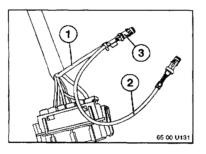 12. Crimp the harness repair cable P/N 61 13 0 007 450 (2) with the existing violet/red wire (1) from X400 by using socket connector P/N 61 13 1 376 206 (3).