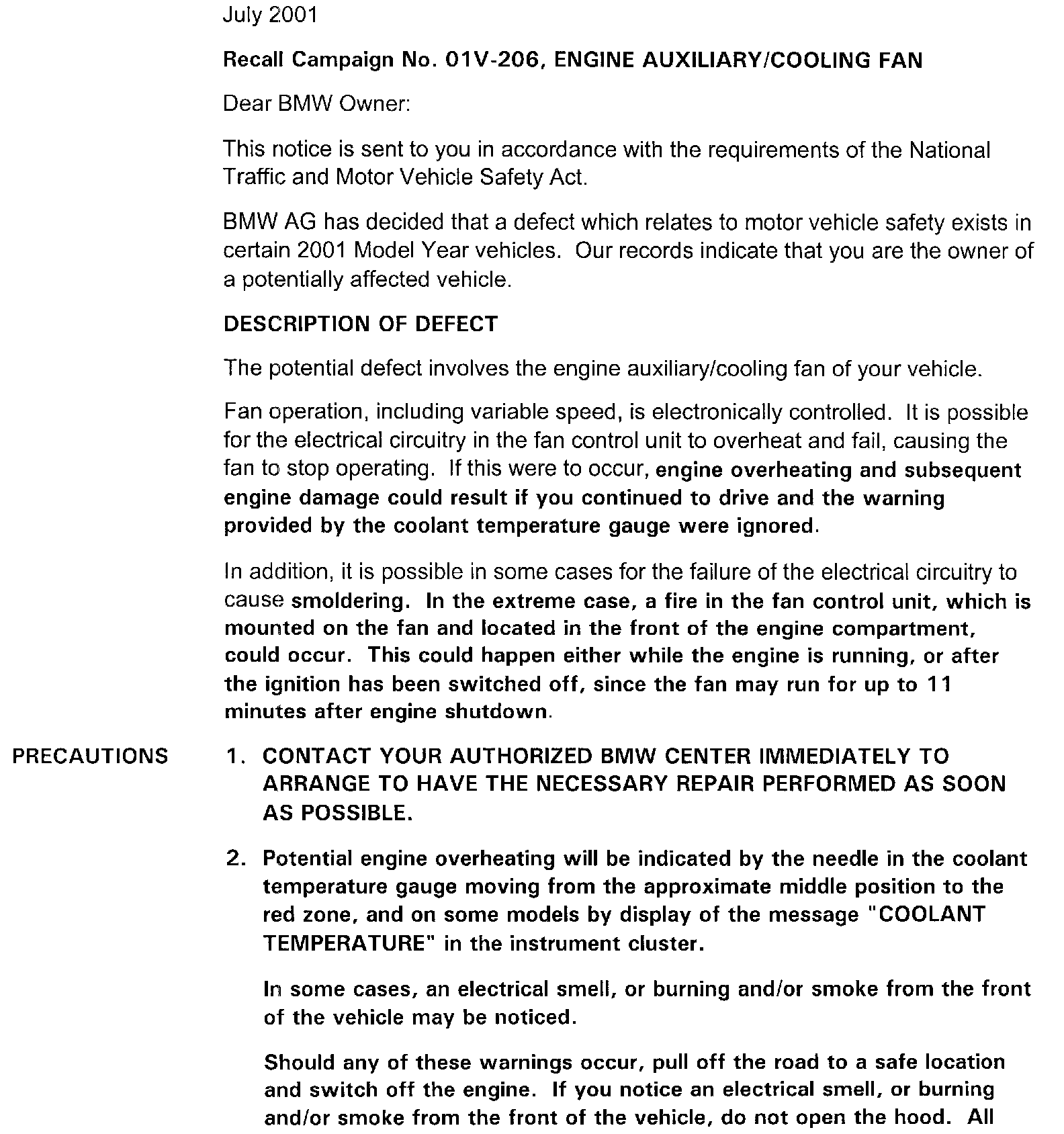 Recall - Auxiliary Engine Cooling Fan Replacement