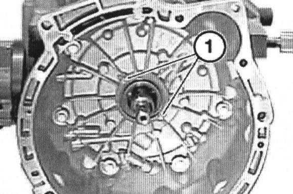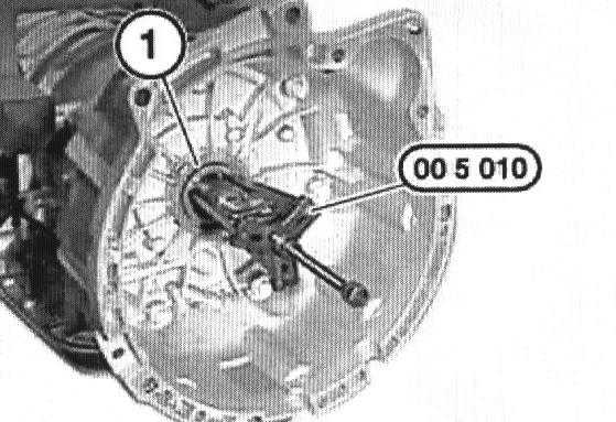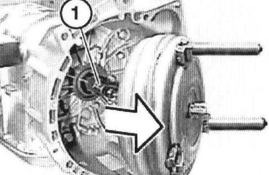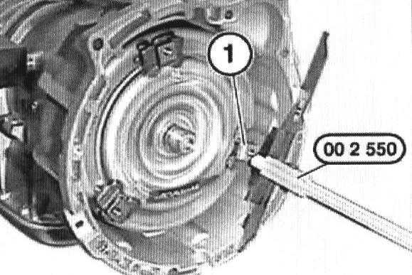 Withdraw radial seal (1) with special tool 00 5 010 from converter bell housing.