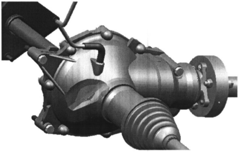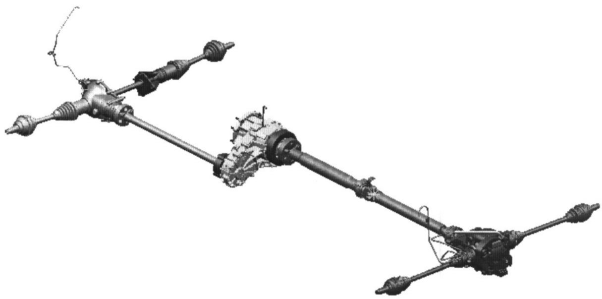 It incorporates a planetary gear set and chain to provide the torque split and all wheel drive. The output torque of the transmission is applied to the planetary carrier of the gear set. The rear drive shaft is connected to the annulus gear and the front drive shaft is connected to the sun gear through the chain drive.