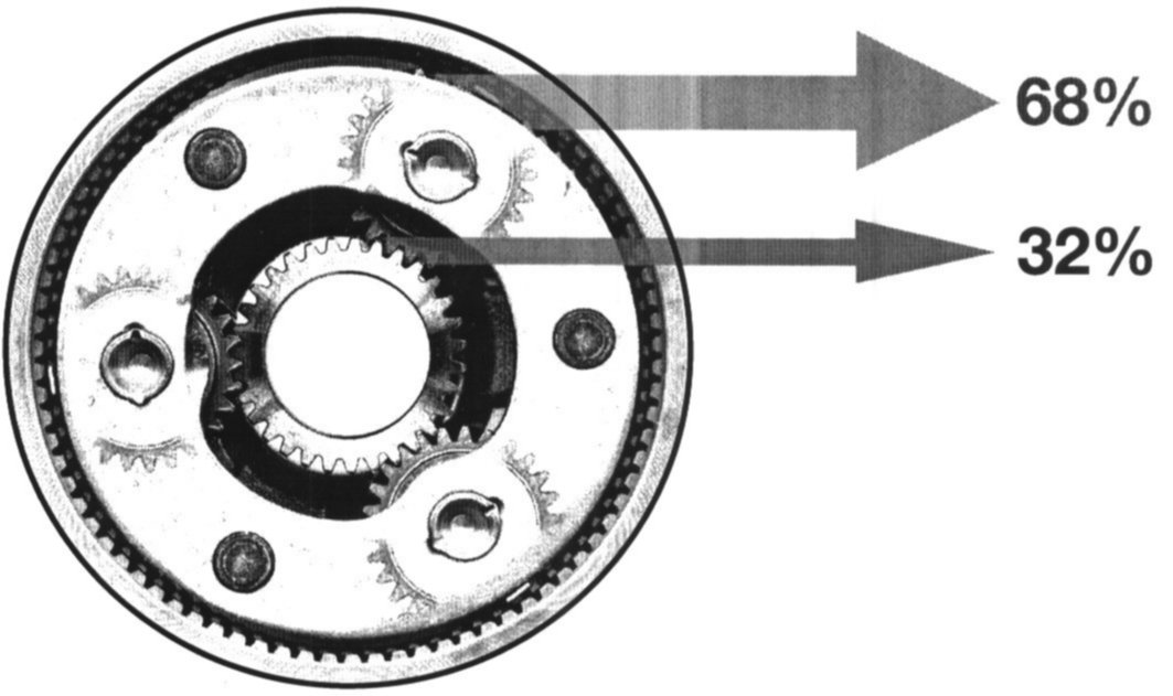 A torque split of 68% rear/32% front is provided through the gearing of the planetary set.