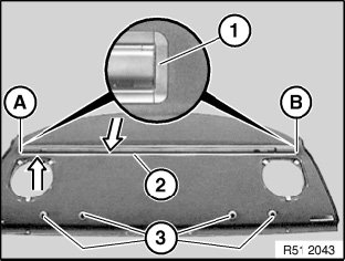 Make sure guides (1) are correctly seated on rear parcel shelf.