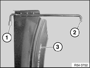 Pull water gutter forwards until roller (2) can be seen through opening in guide channel (3).