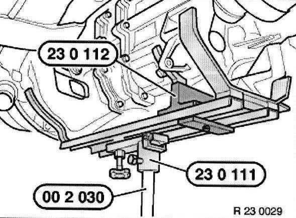 Support transmission with special tool 00 2 030, 23 0 040 (23 0 041 and 23 0 042).