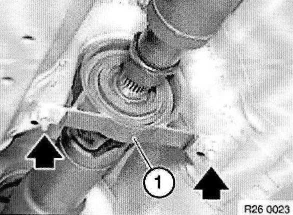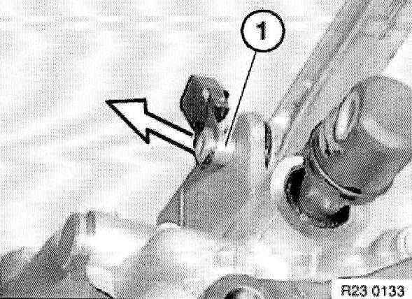 Lever out spring (1) with a screwdriver from lug (2) on housing.