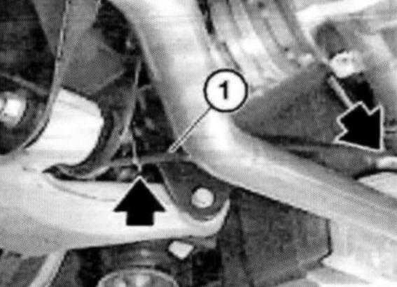 Pull handbrake cable (1) out of mount, out of guide tube and out of wheel carrier.