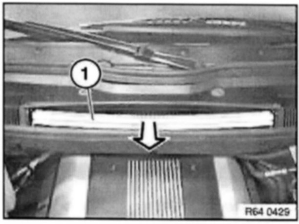 Pull out microfilter for interior ventilation (1) in direction of arrow.
