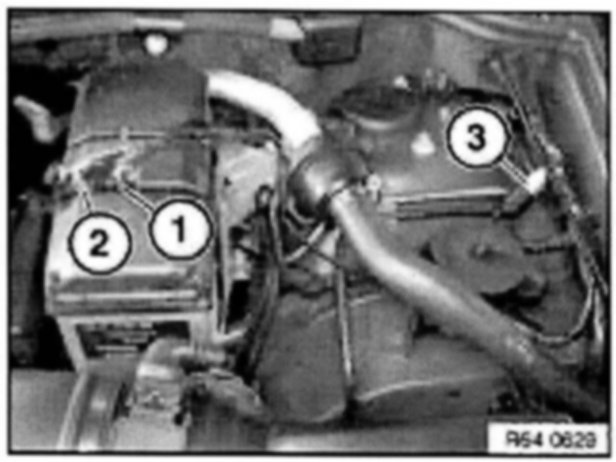 Detach fuel cooler (3) in direction of arrow from guide (2) and place to one side.