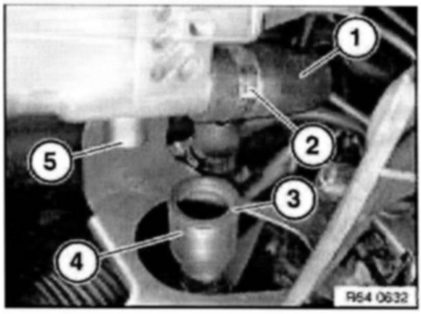Release screw (4) and remove retaining fixture with centering for fuel cooler.