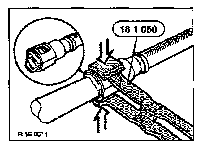 NOTE: Unlock connections on carbon canister with special tool 16 1 050.