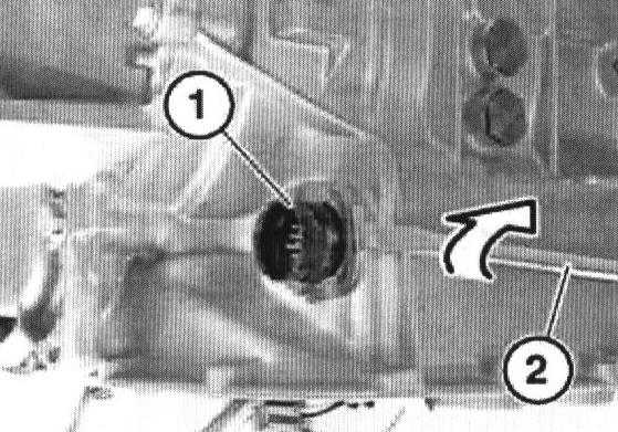Remove retaining clip with screwdriver (2). Push transmission plug (1) into transmission.
