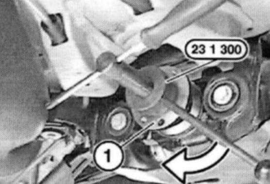 If necessary, press on drive flange with special tool 23 1 300 but only until collar nut can be screwed on a few turns.