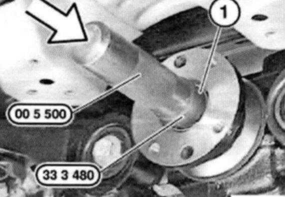 Drive in new tab washer (1) with special tools 00 5 500 and 33 3 480.
