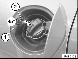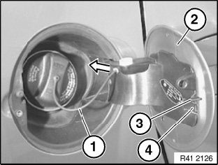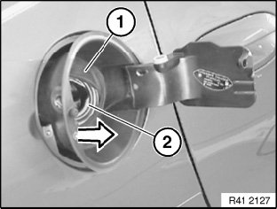 Lift seal (1) over fuel filler neck (2).