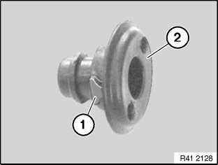 Press retaining strap (1) inwards and remove.