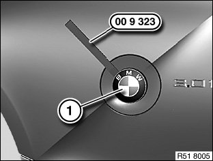 Heat badge (1) with hot air blower and detach with special tool 00 9 323.