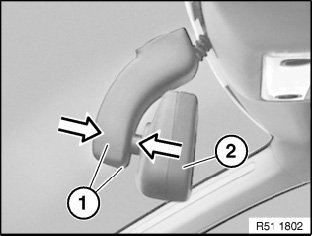 Press end caps (1) towards mirror housing (2); this releases clip connection of both caps (1).