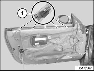 If necessary, detach faulty retainers (1) from inner door panel and replace.