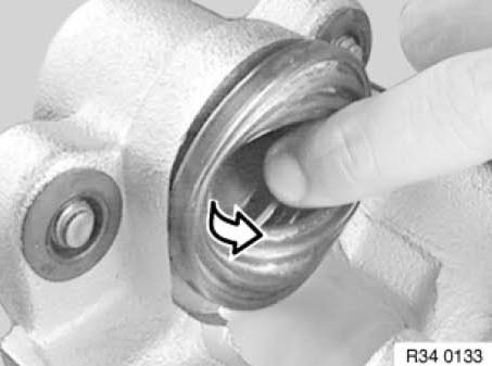 Installation: The area between the dust sleeve and the brake caliper housing must be kept dry. It must not come into contact with Ate brake cylinder paste or brake fluid so as to ensure that the dust sleeve is perfectly seated.