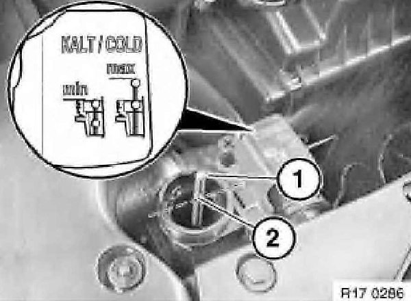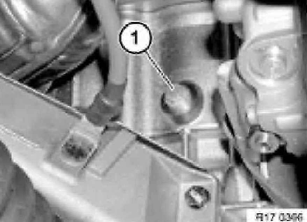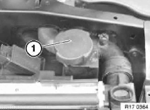 Close vent screw when bubble-free coolant emerges Fill coolant expansion tank to maximum cold fill level. Marking (2) is then on a level with upper edge of coolant expansion tank.
