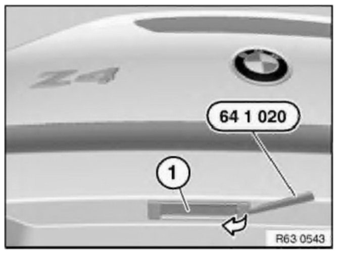 Lever out license plate light (1) with special tool 64 1 020 as illustrated.