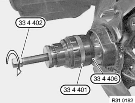 Attach special tool 33 4 406/33 4 401 to bearing inner race and tension until special tool can still just be turned.