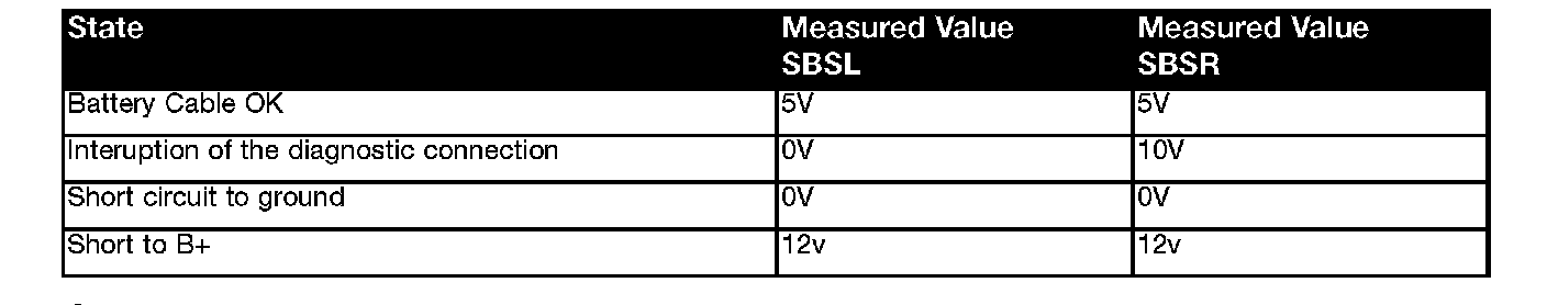 Battery Cable MonitoringThe battery cable is diagnosed by a special circuit between the SBSL and SBSR satellites.