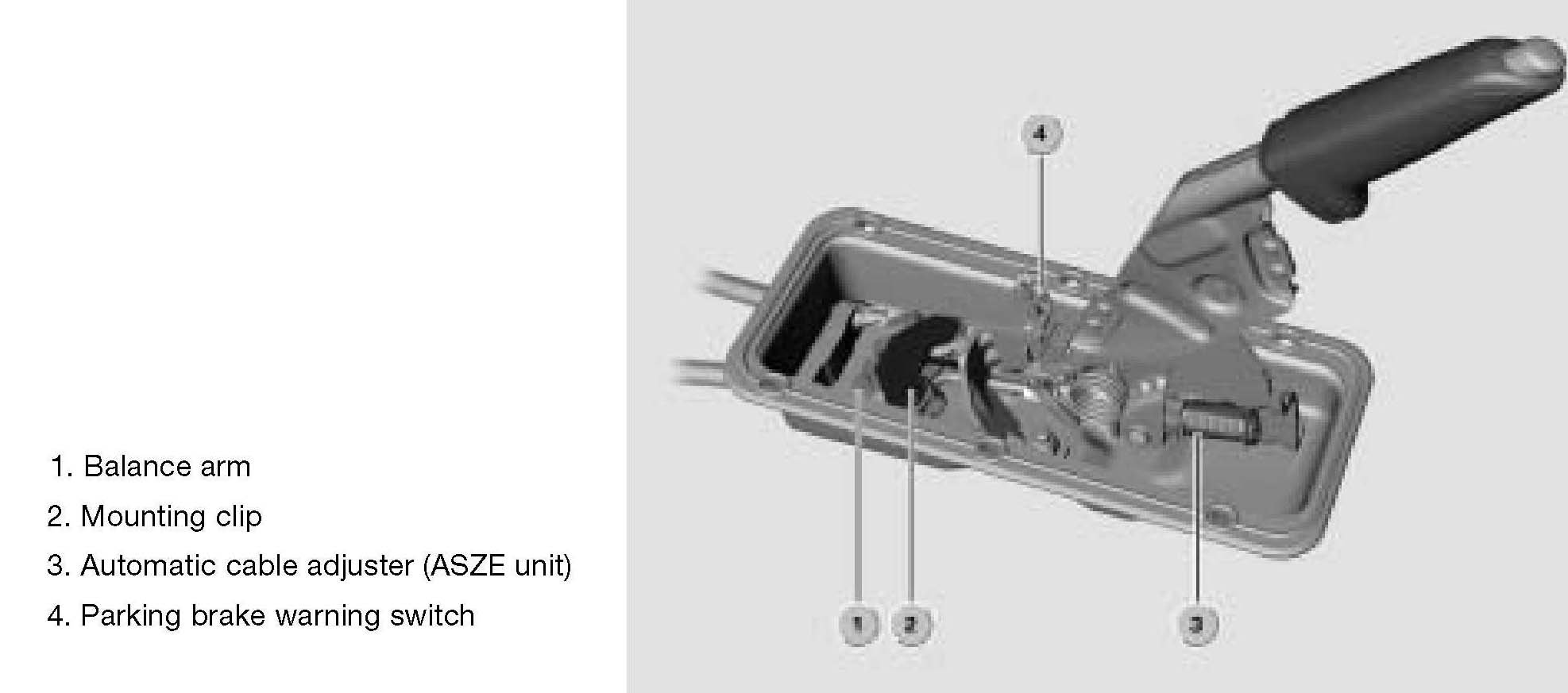 Note: Parking brake lining wear is not compensated by the ASZE unit (traditional adjustments at the wheels are still required).