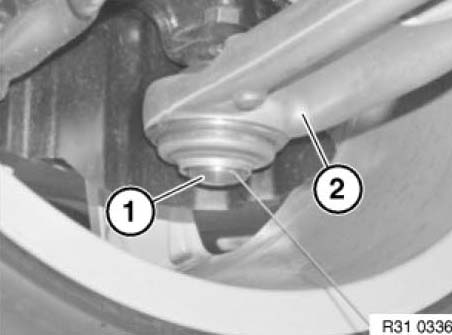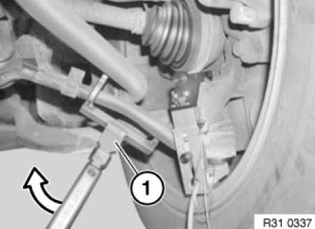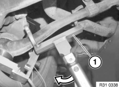 Introduce a force with hook wrench (1) in the direction shown until torque is obtained.