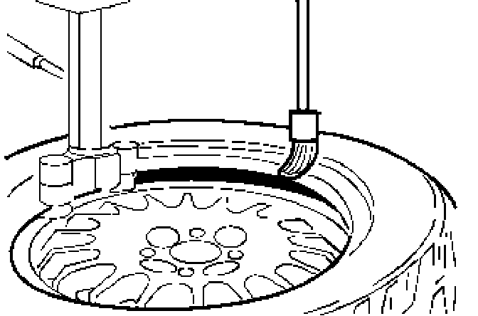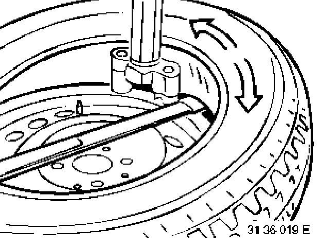 Operate fitting machine forwards (clockwise) little by little; while doing so, make sure the lower tire bead remains in the well.