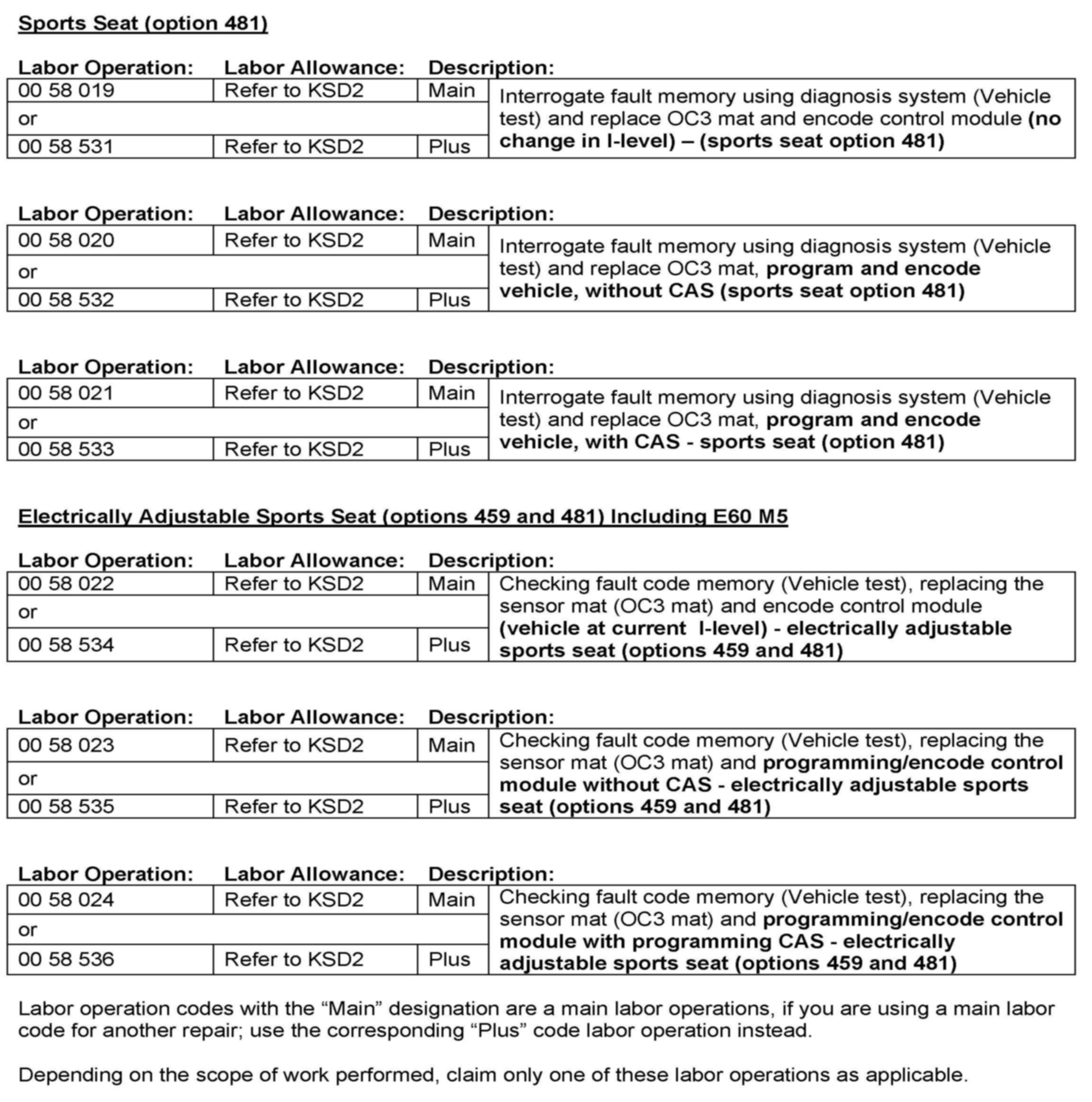 [NEW] For E65 and E66 with the SBE mat, refer to ISTA Repair Instructions REP 65 7 598 to replace the SBE seat mat. No programming is required.