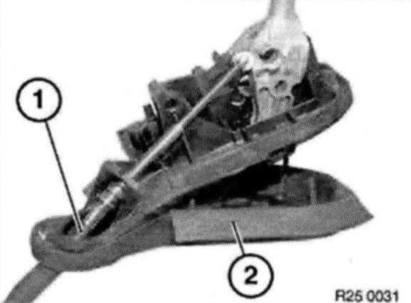 Pull cable (1) out of ball shell (2) out of selector lever