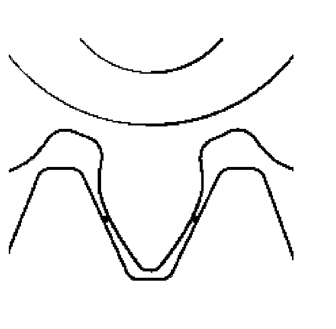 This creates linear contact (dots shown to the right) with the toothed segments to the clutch drive plate center splines. The reduced friction of the linear contact provides easier declutching operation.