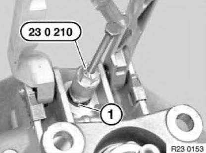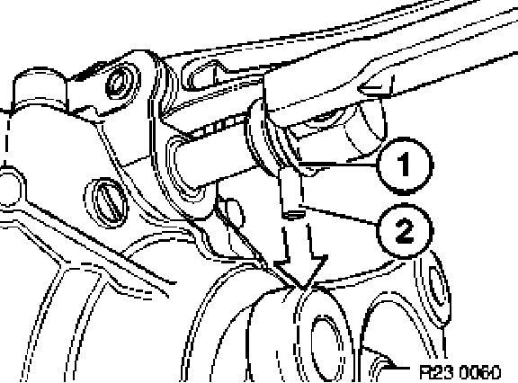 Screw in special tool 23 0 210 until it is firmly connected to radial seal (1). Pull out radial seal with special tool 23 0 210