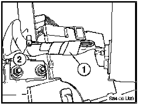 11. Disconnect the original GPS antenna cable (2) from the Navigation computer and tie it back to the wiring harness. Cover the cable and the connector with a tape (1).