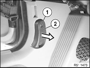 Remove mucket (1) in area of footwell trim.