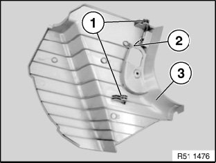 Push footwell trim (3) a little to rear (guides (3) are unlocked) and detach footwell trim towards inside.