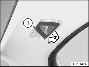 Lift out side interior light (1) from C-pillar trim and disconnect plug connection.