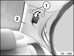 Unclip clips (1) and remove trim (2) towards inside/top.