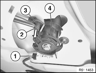 Raise tail light (1) a little and remove with guides (2) facing outwards from trunk lid (3).