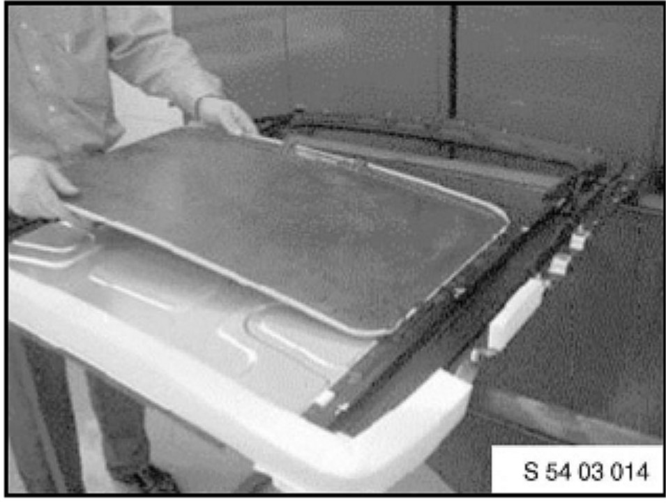 Remove the complete sunroof cassette per Repair Instructions RA 54 12 211.