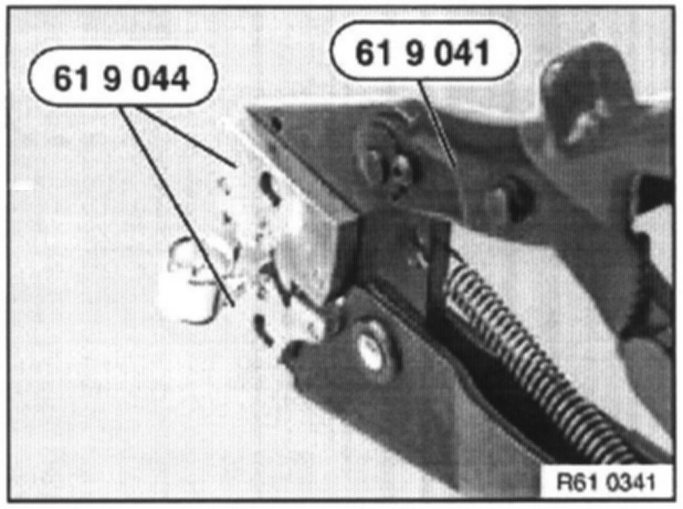 The special tool 61 9 041 (crimping tool) in conjunction with special tool 61 9 044 (matrix) are used for crimping the antenna elbow plug.