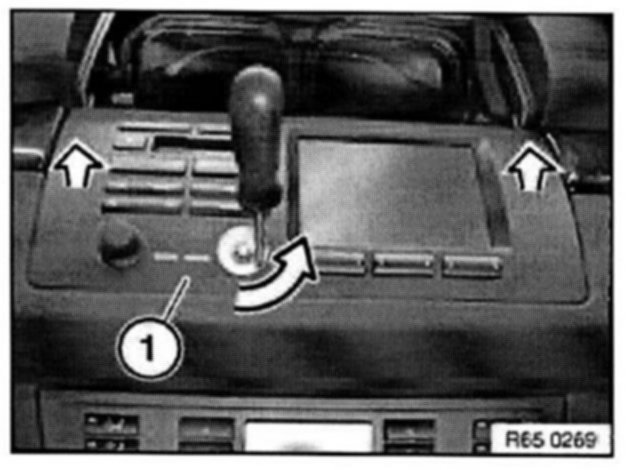 Turn screwdriver approx. 45° in direction of arrow and unlock on-board monitor.