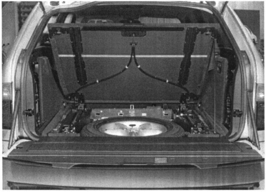 The load floor is held in position by the locking bowden cable mechanism that latches when closed to prevent the floor from sliding while the vehicle is moving. The load floor incorporates a shear point that will cause the floor to collapse upward in a rear collision.