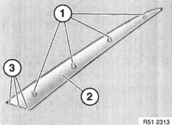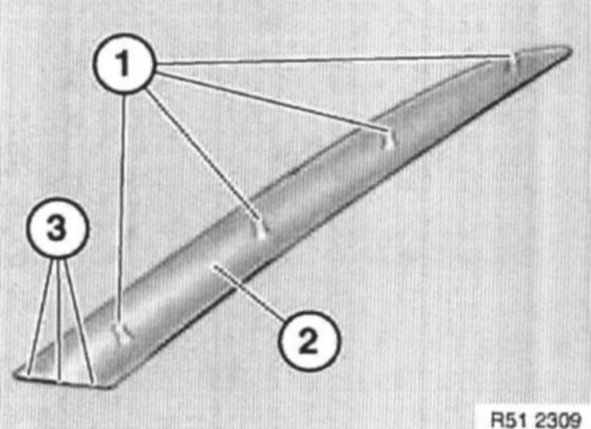 Pins (1) and mounts (3) of decorative strip (2) must not be damaged.