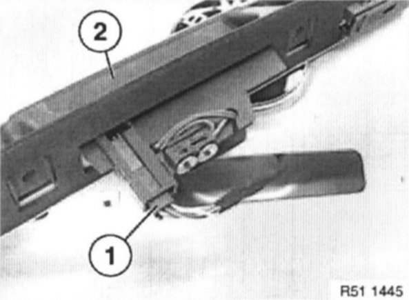 Feed wiring harness (2) in direction of arrow out of mounting (1).