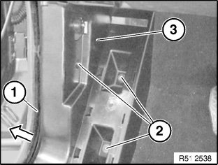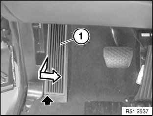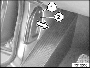 Remove footwell trim (3) towards front/interior.