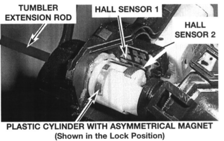 The presence Of a magnet in close proximity to the sensing surface of either hall sensor creates a coded input over the two wires that the GM uses to determine the key position.
