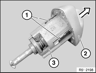 Remove catches (1) and detach cover (2) from lock cylinder (3).