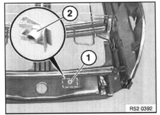 Press backrest cover (1) to one side and release screw (2) on left and right.